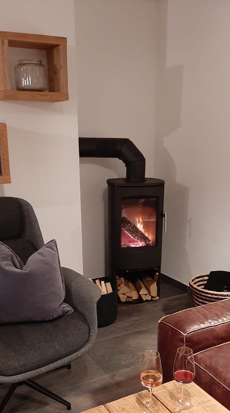 Ausstattung Wohn-Esszimmer: Runde Ess-Ecke im Erker für bis zu 6 Personen, Flachbild-Fernseher mit Satelliten-TV + Internet, W-LAN