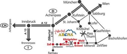 a) ohne Maut: Von München kommend die Inntal-Autobahn in Kiefersfelden verlassen; Landstraße bis Kufstein-Süd fahren - Kitzbühl - Mittersill - Krimml - mautfrei die Gerlospass-Straße bis nach Hochkrimml nehmen.